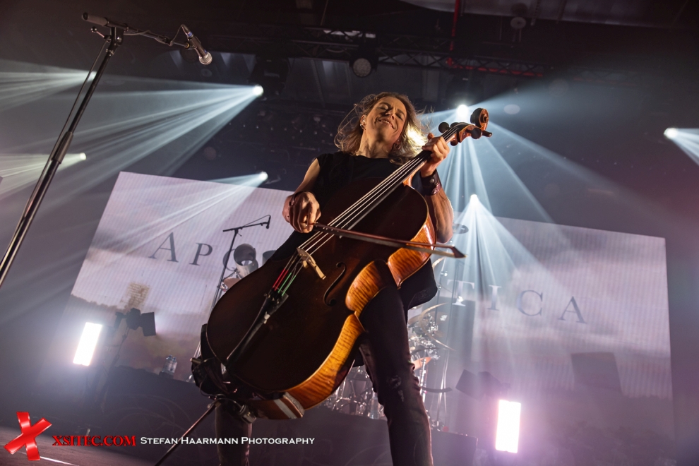 APOCALYPTICA starten mit „Ashes of the Modern World“ und machen sofort deutlich, dass ihr nun folgendes Programm nicht zum Durchschnaufen der Fangemeinde tauglich ist. Mit Blick in die Augen der Hauptakteure wird zudem klar, wie sehr die Band auf diese Tour hingefiebert hat. Die Nebelkanonen laufen hier auch erfreulicherweise nicht mehr am Anschlag, so dass die Effekte der LED-Wall besser zur Geltung kommen als dies bei EPICA der Fall war.