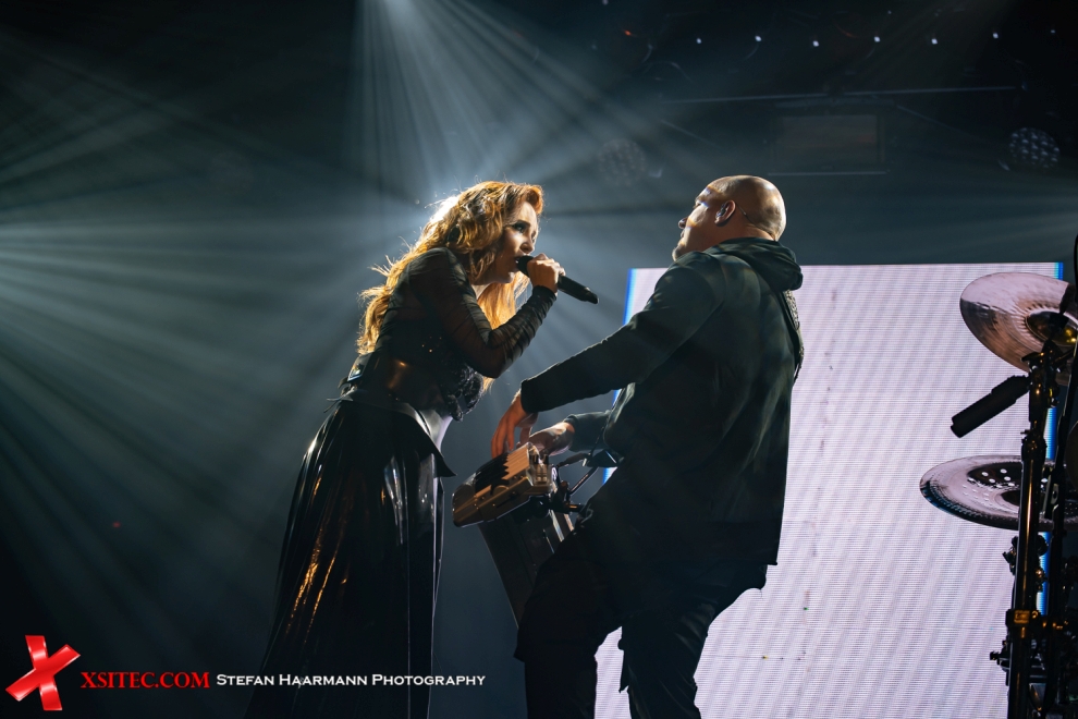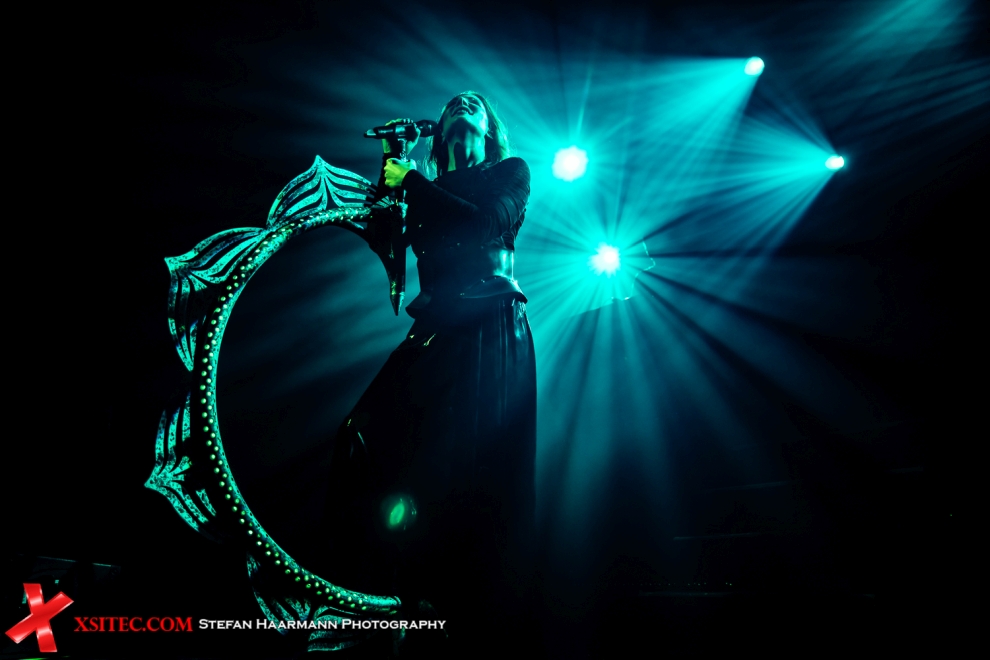 Zunächst sind EPICA um Frontlady Simone Simonis an der Reihe, denen die Aufgabe zufällt, die Fans auch ohne den sonst üblichen Support auf Betriebstemperatur zu bringen. Nach dem gediegenen Intro „Alpha Anteludium“ vom Band geht es mit „Abyss of Time – Countdown to Singularity“ ohne Umwege in die Vollen. Die LED-Wände im Hintergrund untermalen die perfekt in Szene gesetzte Musik, die immer dann besondere Momente präsentiert, wenn Frontlady Simonis im Mittelpunkt steht. Dies gilt insbesondere für die ruhigen Passagen, in denen ihr Sopran das alles überstrahlende Element ist.