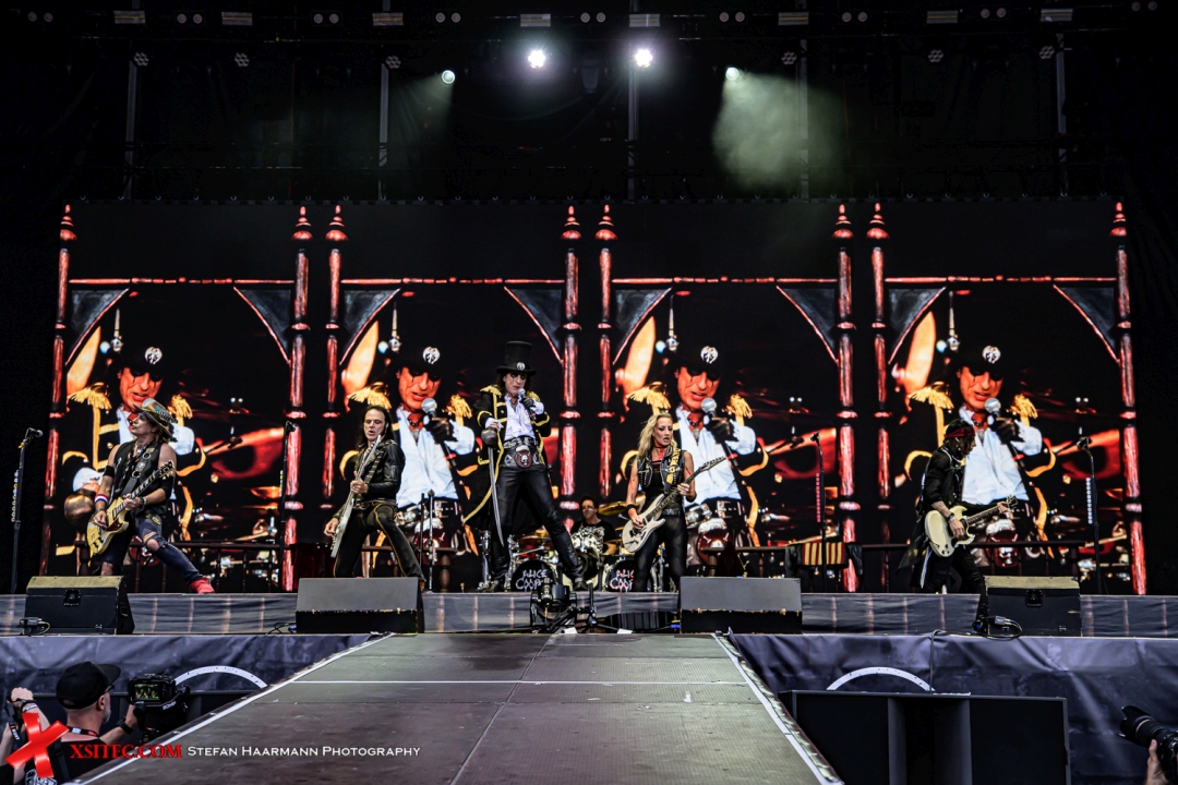 Während die meisten seines Jahrgangs bereits ihren Ruhestand genießen, hüpft Cooper wie ein Jungspund über die Bühne, wird mal in eine Zwangsjacke gesteckt, wirbelt eine Krücke durch die Luft (Botschaft: „Seht her, ich brauche sowas nicht“) und liefert ganz nebenbei und wie selbstverständlich die Hits seiner Karriere in toller Qualität ab. Das ist ganz großes Kino und man fragt sich in diesen Momenten unwillkürlich, ob die Zeit für ihn stehengeblieben ist. Dennoch ruht sich der Meister nicht auf seinen Lorbeeren aus und produziert in beeindruckender Konstanz weiter neues Material, das auch an diesem Abend gespielt wird und sich prächtig in die Phalanx der Hits einreiht, siehe „Welcome To The Show“ vom neuesten Werk „Road“.