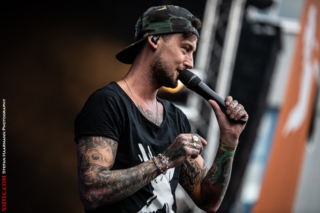 macht aber den kräftigen Regen, der Samstagabend während der BETONTOD-Show niederging, vergessen. Hier und da erinnern noch ein paar Pfützen an die Niederschläge der vergangenen Nacht, aber auch der ein oder andere Besucher macht den Eindruck, als hätte er im Laufe einer langen Aftershow-Party mehr als nur einen Absacker hinnehmen müssen.