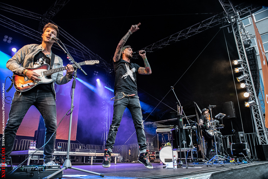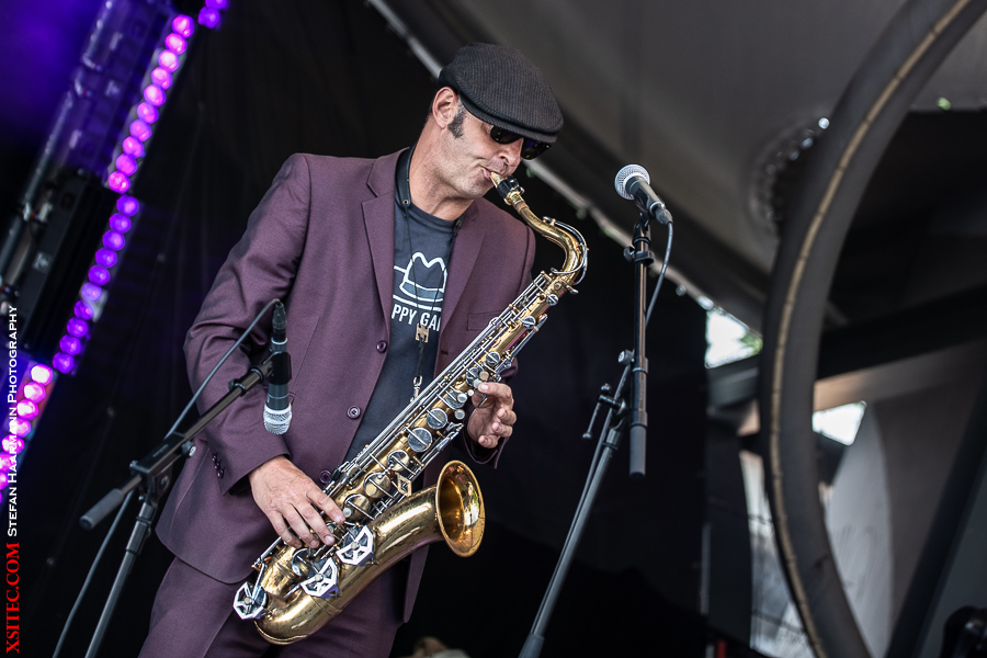 Bei meinem Eintreffen an der SPARKASSEN-Bühne wird dort schon heftig musiziert. THE HAPPY GANGSTAS, die als Partyband eigentlich einen späteren Slot verdient gehabt hätten, machen schon ordentlich Alarm und die zahlreichen Besucher feiern eine Swing-, Jazz-, Pop- und Punk- Sause, wie sie im Buche steht. Die Truppe gehört in Zukunft auf größere Bühnen.