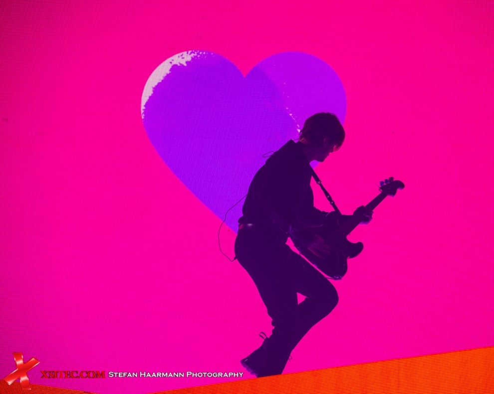 Die folgende Umbaupause nimmt ein wenig mehr Zeit als zuvor in Anspruch, was aufgrund des ausladenden Equipment des Hauptacts BRING ME THE HORIZON zwangsläufig erscheint. Neben einer Schlagzeug-Schießbude wird ein mächtiges Keyboard Ensemble aufgebaut, dazwischen steht eine mächtige LED-Wall, die in der Folge jedes nur erdenkliche, visuelle Highlight bietet, vom Intro angefangen („Scanning for moshpits“), bis hin zu animierten Herzen, Computercode und sonstigen Gimmiks. Großes Kino. Frontmann Oli Sykes sorgt mit seiner Präsenz dafür, dass die optischen Highlights im Hintergrund nur Beiwerk bleiben und zieht sofort die Blicke der Fans auf sich. Wie energiegeladen die Band aus Sheffield aus der Garderobe kommt, kann man mit Blick auf die Livebilder sicher ahnen. Hier gibt es keine Sekunde Stillstand, hier wird gesprungen und mit einer solchen Vehemenz abgeliefert, die man so nur selten erlebt.