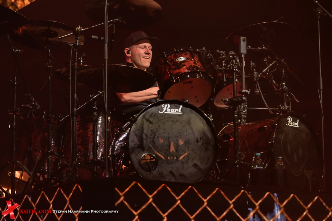 Etwa zur Hälfte des Gigs steht bei „A Gunshot To The Head Of Trepidation“ ein tolles Schlagzeugsolo auf dem Programm, das Alex Bent die Gelegenheit gibt, seinerseits das Rampenlicht zu dominieren. Die Halle geht begeistert mit und auch TRIVIUM gefallen mit zahlreichen, neuen Ideen, die den Songs des Albums eine Frischzellenkur verpassen, die den Abend zu einem unvergesslichen Highlight werden lassen. Nach „Declaration“ geht es zunächst für eine kurze Erfrischung in die Garderobe, bevor TRIVIUM mit „In Waves“ den Sack endgültig zumachen und den Abend in prächtiger Manier beschließen.