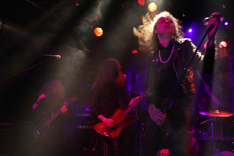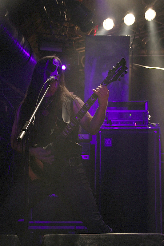 SVARTTJERN sind ein klassischer Vertreter des norwegischen Black Metals und das sowohl in musikalischer, wie auch in optischer Hinsicht. Corpsepaint im Gesicht und auf dem Oberkörper sind bei den Osloern noch immer genauso angesagt, wie die martialischen Nagelarmbänder. Und so grimmig, wie sie aussehen, präsentieren sie sich auch musikalisch. Flirrende Leadgitarren legen einen Teppich aus flächigen Harmonien, auf denen brutal klirrend gerifft wird, das alles im Geschwindigkeitsbereich zwischen treibendem Midtempo und manischer Raserei, begleitet von röchelndem Gekeife. Sonderlich außergewöhnlich ist das nicht, wird von SVARTTJERN aber überzeugend dargeboten. Obwohl die Band mit "Ultimatum Necrophilia" gerade ihr drittes Album veröffentlicht hat, wird daraus nur der Titeltrack dargeboten, die anderen sechs Stücke entstammen den Vorgängeralben. Solider Auftakt in den Konzertabend, an dem es abgesehen von der nicht sehr ausgeprägten Eigenständigkeit kaum etwas zu bemäkeln gibt, denn auch der Sound ist hier passabel.