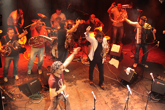 Es gibt weder eine Vorband noch eine große Show. Kurz nach 21 Uhr betritt ein Dutzend Männer in Alltagskleidung die Bühne und schnallt sich die Instrumente um: Gitarre, Akkordeon, Percussion und natürlich die Bläser. Dann kommen Vater und Sohn Markovic dazu, ebenfalls ohne großes Trara, und es wird losgelegt.
