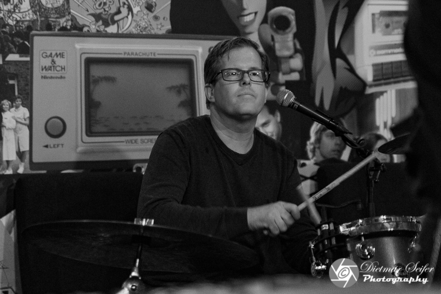 Das Flashbacks ist eine „Retro Music Bar“ mitten im Bochumer Bermuda3Eck, also schräg gegenüber von besagtem Container am KAP. Auf der kleinen improvisierten Bühne sollten also nun alle für die Bühne am KAP vorgesehenen Konzerte stattfinden. Na ja, besser für die Künstler war das allemal. Schon wegen des Wetters.