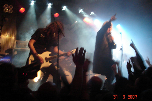 Anfangs betätigten sich Leif Edling und Mats Björkman von CANDLEMASS als DJs, bevor es dann endlich mit der Vorgruppe GRAND MAGUS losging: Der Sound war zwar nicht besonders, und ich kenne auch leider keine ihrer CDs, aber die Band konnte trotzdem überzeugen.