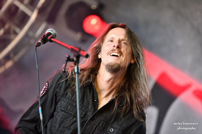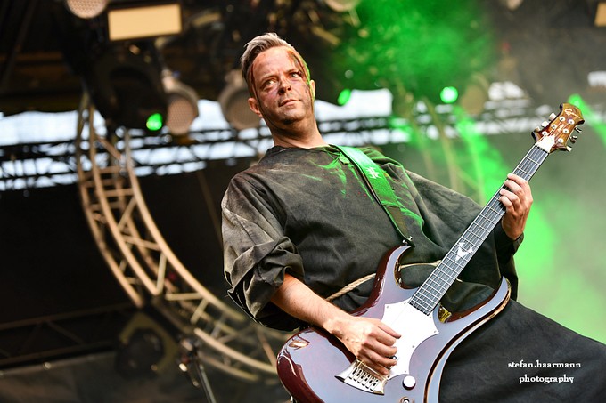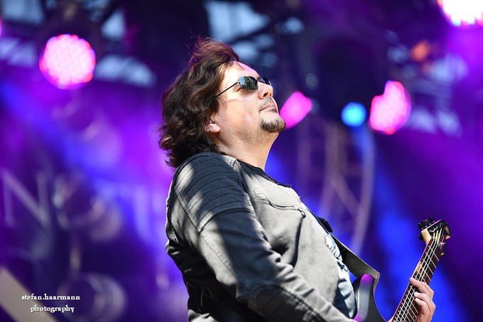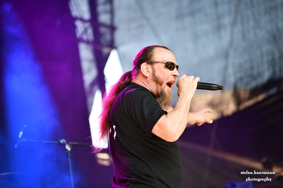 Nun folgt mit EVERGREY eine Band, die Chefstratege Michael Bohnes nach eigener Aussage erst kürzlich für sich entdeckt hat und sofort den Wunsch in ihm aufkommen ließ, die Jungs aus Göteborg für das CASTLE ROCK Festival zu gewinnen. Gesagt – getan. Die Mannen um TOM ENGLUND entern die Bühne und mit den ersten Takten der Dark Melodic/Progressive Metaller wird klar, warum die Band seit Jahren über die Landesgrenzen Schwedens hinaus eine ständig wachsende Fanbase hat. Starke Melodien sind eingebettet in knallharte Riffs, der treibende Groove der Rhythmusfraktion um Bassmann Johan Niemann und Drummer Jonas Ekdahl tut ein Übriges.
