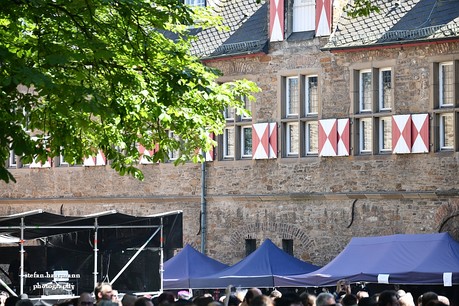 Die beiden Sackpfeifen werden in bewährter Art eingesetzt und akzentuieren den typischen TANZWUT-Sound, der hier im Schloßhof eine Menge Anhänger hat. „Steig Ein“, „Bruder Leichtsinn“, und „Reiter Ohne Kopf“ zünden unter Livebedingungen extrem gut und sorgen für strahlende Gesichter der Fans. Ein starker Auftritt.