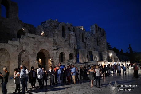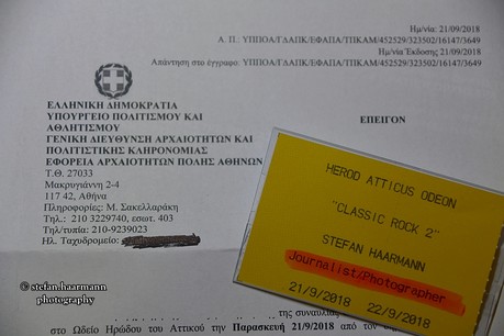 Rückblende: Wie ich durch Recherchen im Vorfeld erfahren hatte, herrscht innerhalb des Odeon ein striktes Verbot, Fotos zu machen, auch Fotos mit dem Handy werden durch zahlreich vorhandenes Aufsichtspersonal rigoros unterbunden, wie ich selbst während der Veranstaltung beobachten konnte. Ohne Akkreditierung lief also nichts. Ich machte mich daher daran, den Veranstalter zu ermitteln und zu meiner Überraschung war dieser nicht etwa eine Eventagentur, sondern das griechische Kultusministerium.