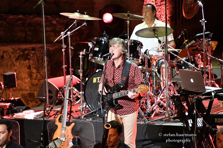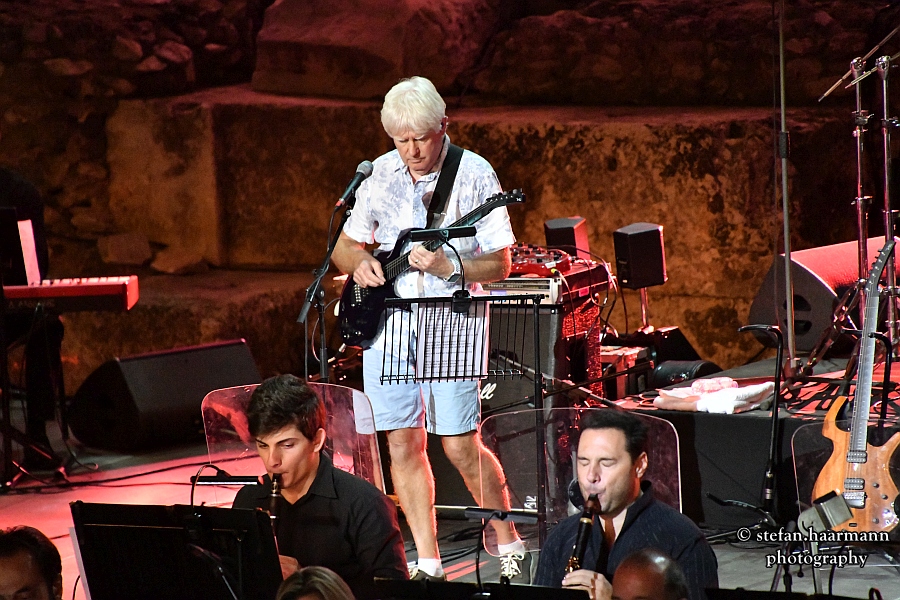 Dann ist es endlich soweit und JOHN LEES´BARCLAY JAMES HARVEST betreten unter frenetischem Applaus des Athener Publikums die Bühne. Setzten die Briten schon seit Beginn ihrer Karriere musikalische Akzente, so ist es an diesem Abend JOHN LEES, der sich keinen Deut um einen etwaigen Dresscode kümmert und mit seinem „Direkt vom Strand–Look“ in blauer Shorts freundlich ins Publikum winkt. Es folgt ein Streifzug durch 40 Jahre Bandgeschichte, in der die Band unter Beweis stellt, dass die Songs von damals auch heute noch ihre Faszination besitzen und darüber hinaus mit Orchesterunterstützung teilweise frischer klingen als im Original. Die Akustik und der herrliche Athener Sommerabend am Fuße der Akropolis tun ein Übriges.