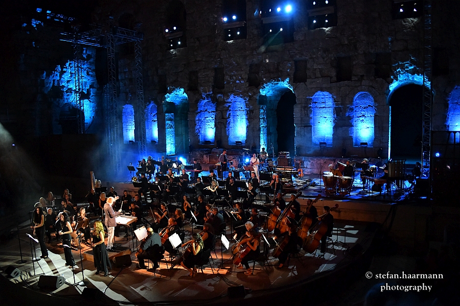 Die zackige Begrüßung des Dirigenten FRIEDEMANN RIEHLE: „Kalispera, Athina“ sorgt für den ersten Schmunzler des Abends, denn mit diesem schneidigen "Guten Abend" des Taktgebers hatte so wohl niemand gerechnet. Die Solistinnen, die im Laufe des Abends Welthits von QUEEN, LED ZEPPELIN, PINK FLOYD, U2 und EUROPE zum Besten geben, machen ihre Sache hervorragend und verleihen dem Abend neben dem wunderschön illuminierten Odeon einen fantastischen Glanz.