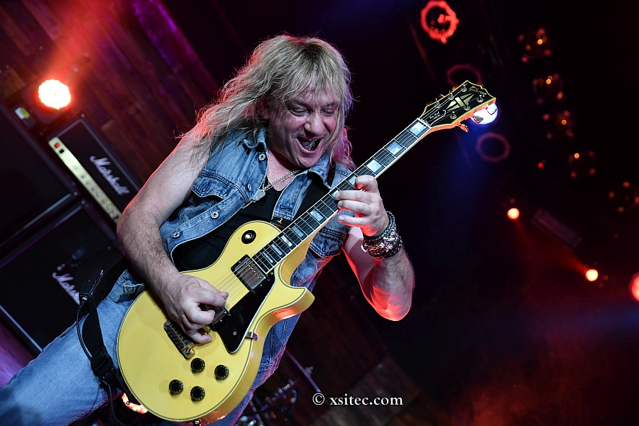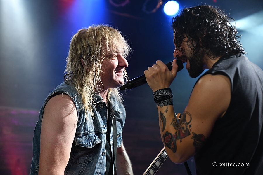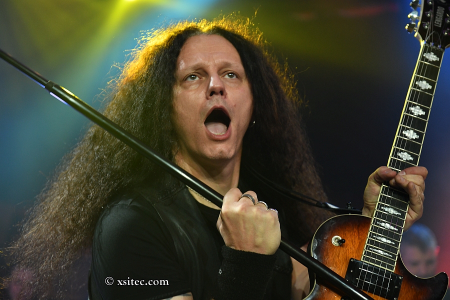 Leo Leoni blüht an seinem angestammten Platz am rechten Bühnenrand regelrecht auf und entlockt seiner Gitarre immer wieder Soli der Extraklasse. Die Band sprüht nur so vor Spielfreude und RONNIE ROMERO stellt eindrucksvoll unter Beweis, einer der besten Sänger im Rock/Metalbereich zu sein. „Firedance“, schon immer einer der beliebtesten GOTTHARD-Titel, liefert die Basis für ein Gitarrenduell zwische Leo und Jgor, das so ausladend angelegt ist, dass Ronnie Romero kurzerhand die Bühne verlässt, um sich auf der Empore unter das Publikum zu mischen und von oben das Geschehen zu kommentieren. Da die beiden Kontrahenten an den Stromgitarren aber noch lange nicht genug haben, muss Romero noch etwas auf seinen erneuten Einsatz warten.