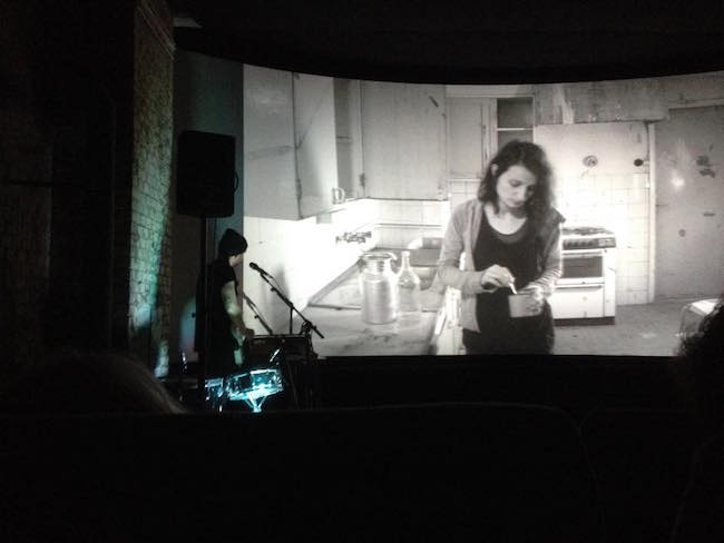 So sieht dann der Beginn des „post-apokalyptischen Soundtracks“ live auf der Kino-Bühne aus, der hoffentlich die Kritiker-Worte bestätigt.