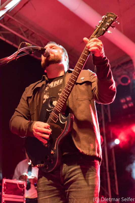 Matt Bigland hat sich leider meistens hinter seiner blonden Mähne versteckt, was es etwas schwierig machte etwas von seinem Gesicht zu sehen. Nach einer guten halben Stunde gab es dann einen etwas verhaltenen Applaus für die Briten und die Bühne konnte für den Headliner umgebaut werden. Ein paar Bilder zu Dinosaur Pile-Up findet ihr hier => https://goo.gl/TK4RY3