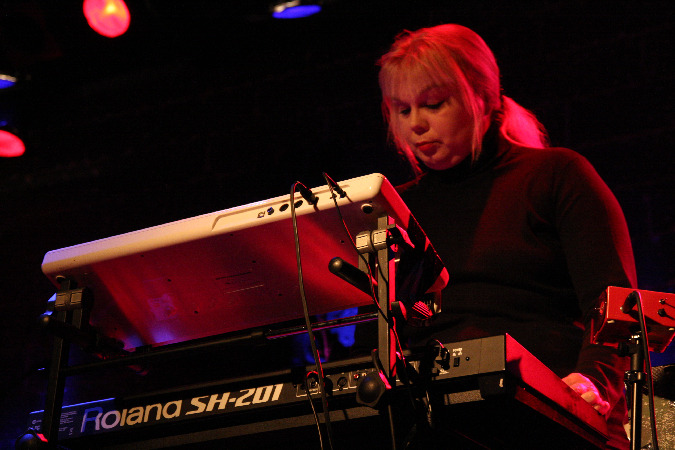 Die Band besteht heute nur noch aus Sänger und Gitarrist Andy Schwarz und Keyboarderin Tina Sanudakura und weil ein Großteil der Instrumentierung aus Keyboard und Laptop kam, wirkte die Performance vielleicht ein wenig steif. Tina nutzte aber oft das Theremin, was der Musik mitunter ein spaciges Feeling verlieh. Nach einer knappen Dreiviertelstunde räumten die beiden dann die geräumige Bühno für das nächste Duo.