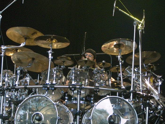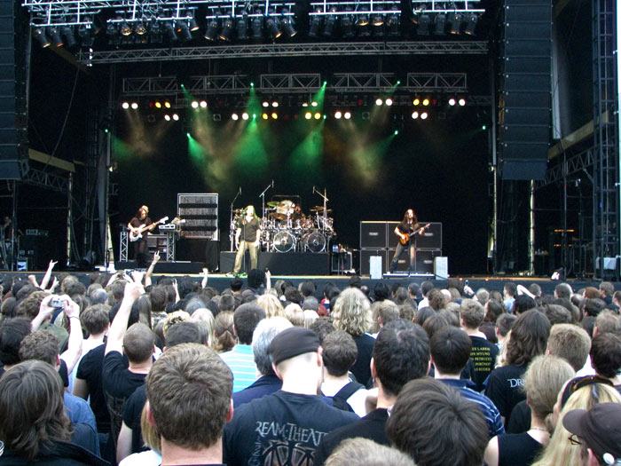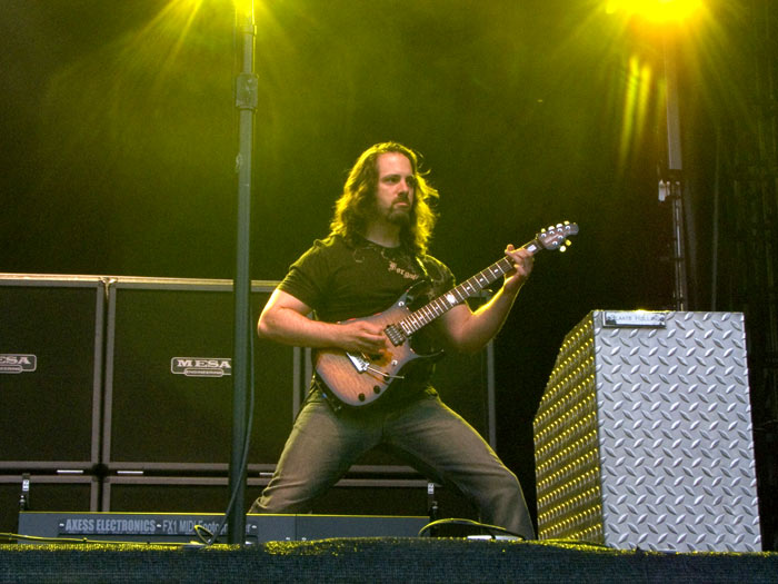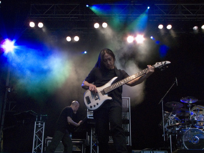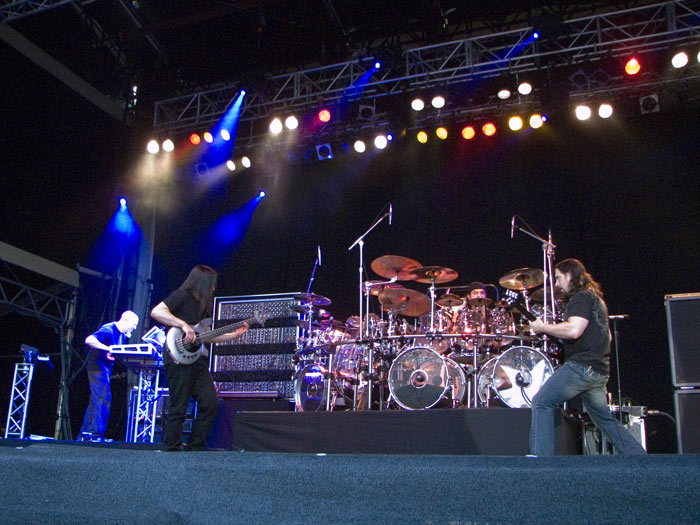 introvertierte Musik nicht auf einer großen Open Air Bühne und RIVERSIDE werden an diesem Abend leider ein wenig unter Wert verkauft. Dennoch bekommt Mariusz Duda Gelegenheit seine warmtönende Stimme wenigstens ein ums andere Mal zu Entfaltung zu bringen. Die Keyboards klingen live dominanter als auf Konserve und der Gitarrensound ist leider ein kleines bisschen zu sehr in den Hintergrund gemixt. Neue Fans haben die Polen wahrscheinlich nicht hinzugewonnen, doch wenigstens bekamen Kenner einen kleinen Eindruck, zu was für Großtaten RIVERSIDE in einem kleinen, atmosphärischen Club fähig sein müssen.DREAM THEATER legen pünktlich los und stürzen sich nach einer Intro auf das ehrwürdige „Scenes From A Memory“. „Overture 1928“ und „Strange Déjà-vu“ machen selbst aus dem Fotograben heraus Laune und steigern die Spannung, wie das neue Material sich live wohl machen wird. Etwas enttäuschend ist, dass nur drei Stücke von „Systematic Chaos“ zum Besten gegeben werden. Dafür ist „Constant Motion“ erwartungsgemäß ein echter Live Hit, der tausendmal mehr Laune macht, als das öde „As I Am“ vom „Train Of Thought“. Das von manchen als zu platt bezeichnete „Forsaken“ entfaltet durchaus Wirkung und das heftig vertrackte „The Dark Eternal Night“ lädt zum chiropraktischen Quadratwurzel-Headbanging ein. Der Sound ist äußerst transparent und auch erstaunlich leise. Was in den ersten Reihen eine schöne Sache ist, verkommt in den hinteren Reihen wahrscheinlich zum Ärgernis. Aber egal. Weitere Highlights der Show sind „Take The Time“ und das äußerst beeindruckende „Endless Sacrifice“ – ein weiterer Beweis dafür, dass einige Stücke live deutlich besser funktionieren als auf dem heimischen CD Player.