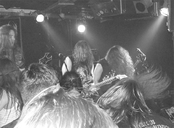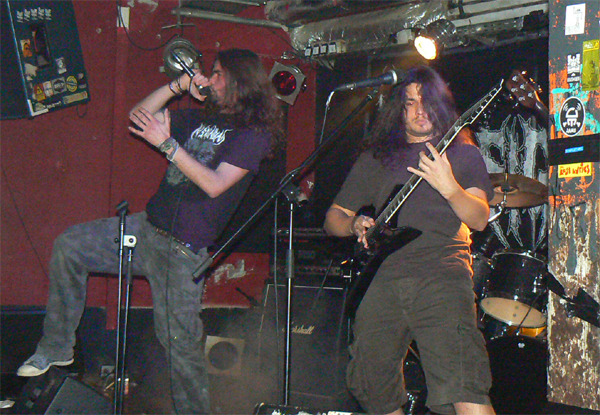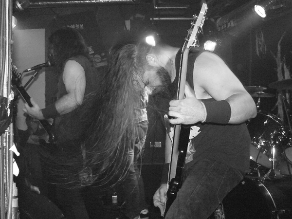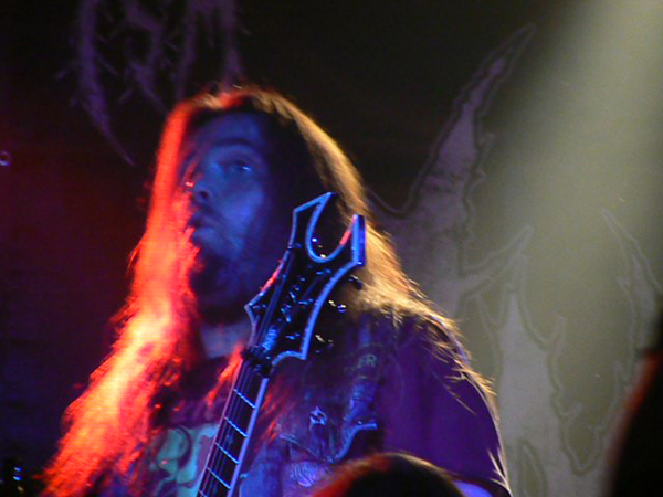 Womit wir bei CEPHALIC CARNAGE wären, die mir auf Konserve immer zu stressig und zerfahren sind. „Live geht das besser“, meint HARKONNEN-Sänger Phillip noch zu mir, bevor der optisch recht gemischte Haufen aus Colorado loslegt und Phillip sollte Recht behalten. Sie Zeichen stehen auf Grindcore und Sänger Leonard Leal erklärt auch gleich, warum das so ist: „Als Grindcore-Band kannst du machen, was du willst. Und Spaß haben.“ Das trifft den Nagel auf den Kopf und CEPHALIC CARNAGE hacken sich engagiert durch ein Set, das zwischen allen vorstellbaren Musikrichtungen pendelt, als Basis aber immer wieder zu ultraschnellem Gehacke zurückkehrt. Faszinierend ist nicht nur die Redneck-Frisur von Bassist Nick Schendzielos, sondern auch seine brillante Art den Fretless-Bass zu bearbeiten und nebenbei noch mit geschwollenen Halsvenen tiefe Growls abzuliefern. Amüsant ist am Ende des Sets die Black-Metal-Verarschung inklusive entsprechender Maskierung. Insgesamt präsentieren sich CEPHALIC CARNAGE als unterhaltsame Krachbrüder, die einen ausgeprägten Hang zu illegalen Rauchwaren zu haben scheinen, roch es doch in der Ecke mit den Gitarrenkoffern heftigst nach verbranntem Gras.