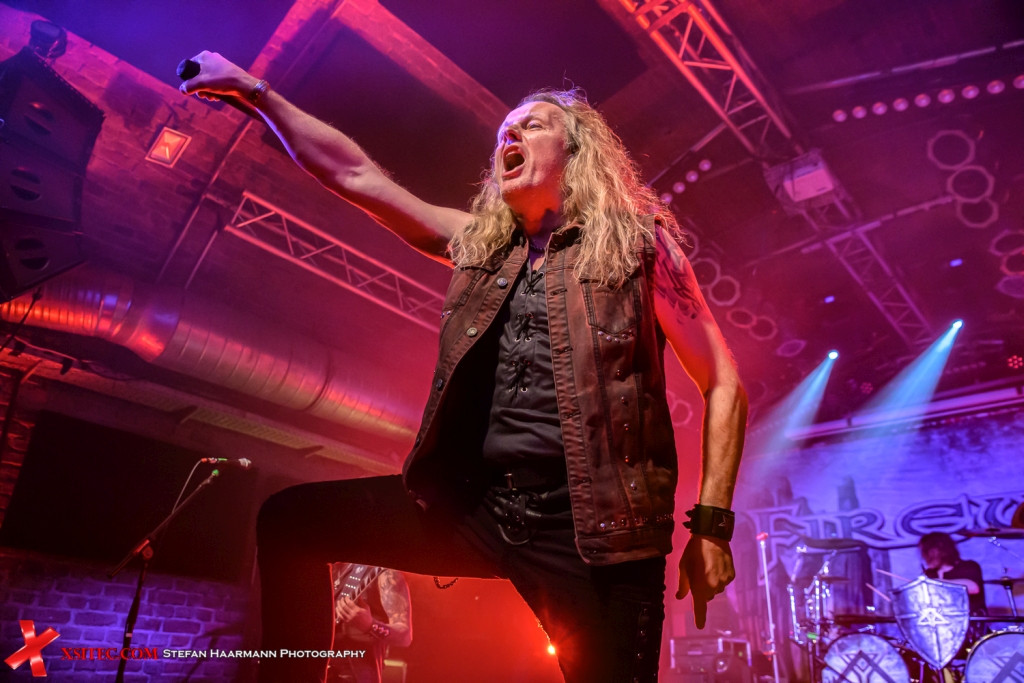 Mit „Salvation Day“ vom neuen Album „Stand United“, das an diesem Tag veröffentlicht wurde, geben FIREWIND die Richtung vor, in die sich der Abend entwickeln sollte. Neben dem bestens aufgelegten Gitarren-Gott Gus G, der bekanntlich schon für OZZY OSBOURNE und ARCH ENEMY in die Saiten gegriffen hat, brilliert Herbie Langhans (AVANTASIA, VOODOO CIRCLE, SINBREED) souverän auch in den schwierigsten Passagen der mit Highnotes gespickten Gesangslinien, die den Unterschied zwischen „normal“ und „fantastisch“ glasklar markieren. Weiter geht’s mit „Destiny Is Calling“, ebenfalls vom neuen Album, ein echter Ohrwurm, der mit einem grandiosen Gus G-Riff beginnt und in einen mächtigen Chorus mündet, den man so schnell nicht mehr aus dem Kopf bekommt. Im Mittelteil folgt dann ein Solo der Marke Gus G, in dem der Magier alle Register seines Könnens zieht. Ein echtes Brett.