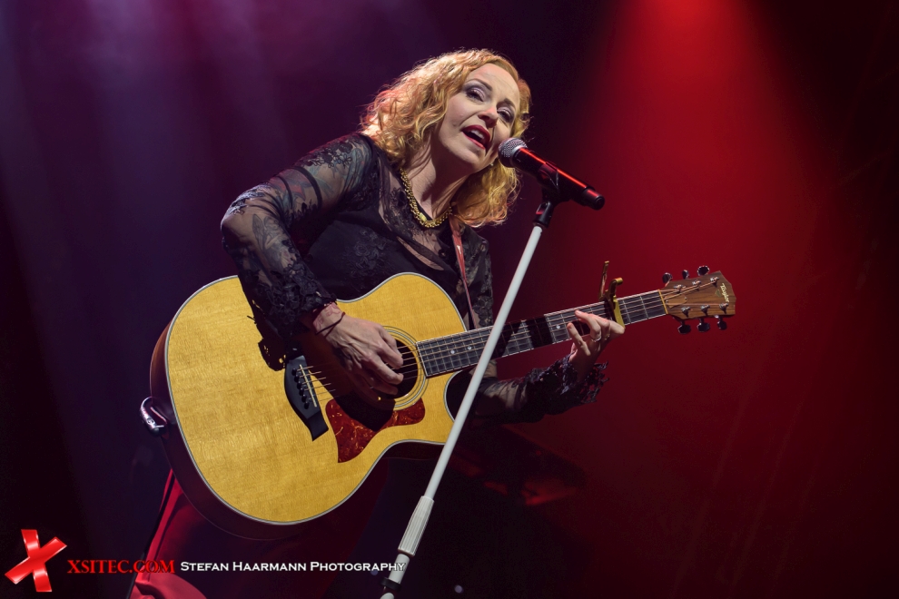 Deshalb passt auch die im Vorprogramm nur mit Akustischer Gitarre bewaffnete ANNEKE VAN GIERSBERGEN perfekt in das Szenario. Die Ex-Frontlady der Prog-Rocker THE GATHERING überzeugt mit feinem Gesang und einer unnachahmlichen Fröhlichkeit, die ansteckend wirkt. Natürlich gibt es mit „Saturnine“ eine Reminiszenz an ihre THE GATHERING Vergangenheit, weit überraschender ist dann aber ihre Version des KATE BUSH-Klassikers „Running Up That Hill“, die in der Turbinenhalle für schiere Begeisterung sorgt. Als ANNEKE VAN GIERSBERGEN nach etwa 35 Minuten ihre Gitarre einpackt, gibt es minutenlangen Applaus für die Sängerin.