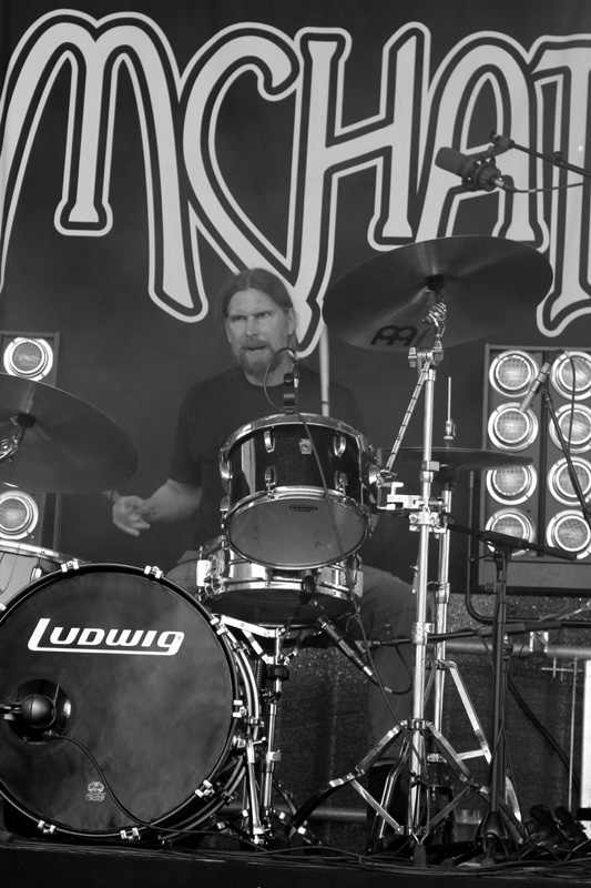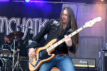 Danach macht sich dann doch das schwedische Power / Blues Rock Trio KAMCHATKA ans Werk, dem die Reisestrapazen nicht anzumerken sind. Mit einer gehörigen Portion guter Laune begrüßt Thomas Juneor Andersson das Publikum, dem in der nächsten Stunde eine bemerkenswert geradlinige Version von KAMCHATKA präsentiert wird – immerhin hat der Ausnahmegitarrist in der Vergangenheit schon manches Lied per Soli und Improvisation gewaltig ausgedehnt. Heute allerdings rocken die drei Vollblutmusiker auf eine Weise ab, die keinen Zweifel daran lässt, dass Bassist Per Wiberg längst mehr als eine Aushilfe ist. So übernimmt er bei einigen Songs vom neuen Album „Long Road Made Of Gold“ den Gesang, und drückt auch einem Lied aus den Anfangstagen der Band seinen Stempel mit sattem Groove auf. Statt Ego-Problemen regiert bei den beiden Virtuosen an den Saiteninstrumente also die reine Spielfreude, während Schlagzeuger Tobias Strandvik die bluesigen Nummern druckvoll nach vorne treibt. Die gute Laune springt über, auch wenn die Schweden in punkto Wucht mit den Griechen nicht mithalten können.