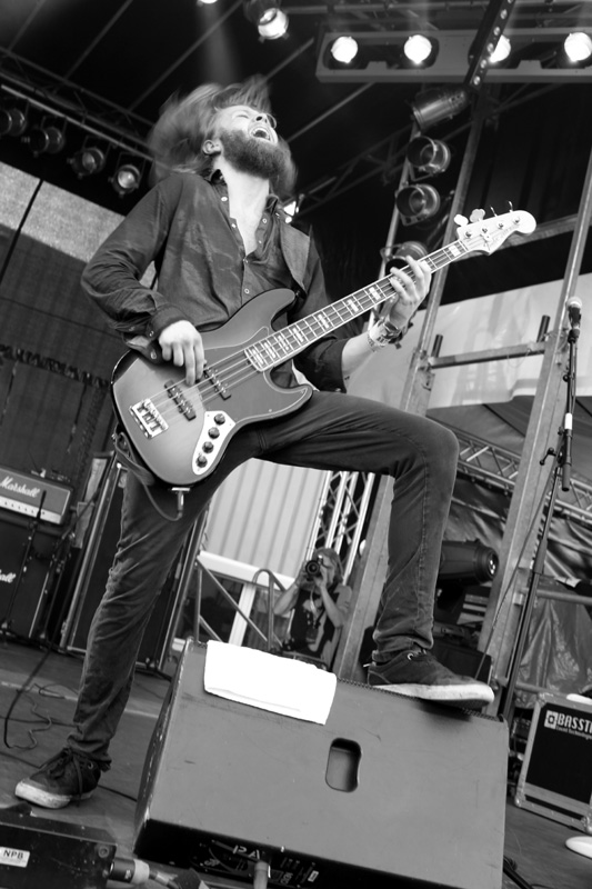 Die griechischen TUBER rücken kurzentschlossen im Programm um einen Slot nach vorne, da KAMCHATKA sich per Flugzeug verspäten. Somit kommt das Publikum in den unerwarteten Genuss dynamisch zielsicheren Instrumental Rocks. Eingängig, locker und kräftig bringen die Südländer die Reihen vor der Bühne zum Mitwippen und nach einigen Songs herrscht trotz mehr als gemütlicher Wärme einige Bewegung im weiten Rund. Der Sound von TUBER kombiniert die sphärische Weite von Long Distance Calling mit einem starken Groove à la Glowsun und kommt somit beim Freak Valley richtig gut an. Die sympathische Ausstrahlung der Griechen spottet aller dümmlichen Klischees, die in den letzten Jahren durch den Blätterwald des Boulevards gejagt wurden, und wer immer noch nicht glaubt, dass Musik ganz einfach Grenzen überwinden kann, der kann auch nur über den Applaus staunen, den TUBER am Ende eines überraschend mitreißenden Gigs ernten.