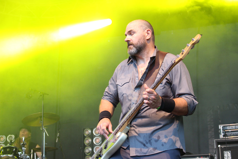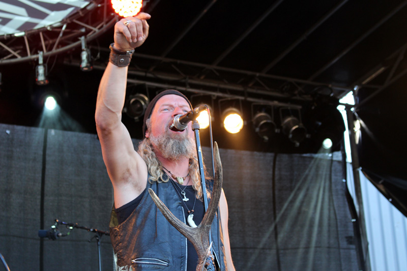 eindringlichen Art: Sänger Pete Stahl ist nicht zu halten, sondern wälzt sich auf dem Boden, sucht ein ums andere Mal den direkten Kontakt zum Publikum, windet sich, schreit und singt als wäre der (heilige?) Geist in ihn gefahren. In seiner extrovertierten wie herzlichen Darbietung erinnert er mich an Sir Hannes (Idiots, Phantoms of Future, Honigdieb), der live auch immer alles gibt. Der Stoner Doom des Quartetts steht breitbeinig im ursprünglichen Blues Rock und interpretiert diesen in grenzgängerischer Stumpf-ist-Trumpf-Manier, ohne dass es peinlich oder langweilig wirkt. Intensiv ist die Darbietung, die Gitarrist Greg Anderson u.a. den Bäumen widmet, an deren Anblick sich die ganze Band sichtlich erfreut: „Das sieht so aus wie in unserer Heimat in North Carolina“, zeigt sich auch Bassist Scott Renner gerührt, der selbst wie ein Baum wirkt, der im Zweifelsfall auch einem Orkan die Stirn bietet. Kraftvoll und mit großer Hingabe beschließt das Quartett einen recht kurzen Gig. Zugabe-Rufe werden im weiteren Rund laut.