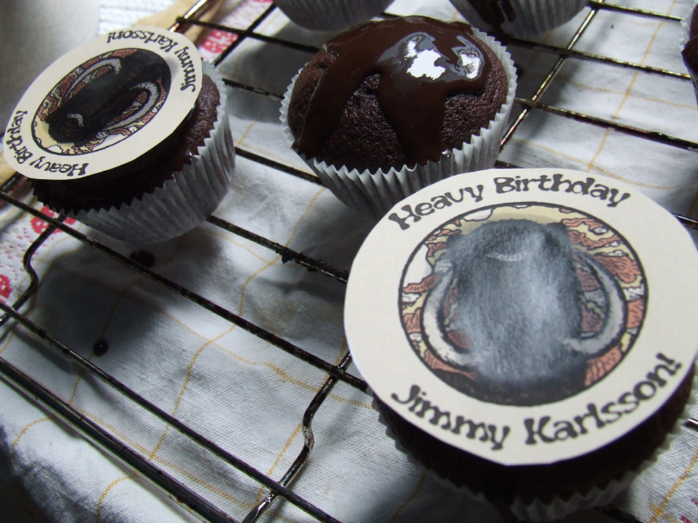Die mit KATLA auf Tour befindlichen MAMONT fühlen sich von ihrem Namensgeber augenscheinlich nicht unter Druck gesetzt und mimen gar nicht erst die Trampeltiere. Ihr fetter Psychedelic Hard Rock erzeugt auch ohne viel Bewegung auf der Bühne ordentlich Druck, und Geburtstagskind Jimmy Karlsson freut sich am Schlagzeug sowieso über alles. Er lässt die Haare im Mammut-Groove fliegen, während sich Sänger und Gitarrist Karl Adolfsson lieber hinter seinen versteckt. Mit seinem Debüt „Passing Through The Mastery Door“ hat das Quartett in der Tat ein kleines Meisterwerk zwischen zeitgenössischem Stoner und Psychedelic Prog sowie Hard Rock der schwedischen Siebziger-Schule eingespielt. Es nutzt die Gunst der frühen Stunde, um den Anwesenden eine mächtige Breitseite zu verpassen. „Jag Sår Ett Frö“, „Creatures“ und „Satans Fasoner“ sind bären- … ähem, Mammut-starke Songs, die auch in einigen Jahrzehnten kaum an Ausdrucksgewalt einbüßen werden. Spielerisch voll auf der Höhe mag es der ebenfalls noch jungen Band ein wenig an Bühnenerfahrung mangeln, aber hier wächst zweifelsohne eine ganz spannende Truppe heran, die sich nicht auf Vintage Rock von der Stange reduzieren lässt, sondern mit Melodien im Stile alter Meister aufwartet und diese mit viel Herzblut füllt – nach meiner kauzigen Wahrnehmung die musikalisch stärkste Band des Festivals! Auch abseits der Bühne erweisen sich die Schweden als Überzeugungstäter: So lässt es sich Drummer Jimmy im Anschluss nicht nehmen, einen anderen Fan und mich mit großer Begeisterung auf die ersten Alben von Hansson und Karlsson hinzuweisen. Der Mann schwebt ohnehin im siebten Himmel: er freut sich auf UNCLE ACID & THE DEADBEATS und Geburtstags-Muffins mit Mammut obendrauf lassen ihn zum Honigkuchenpferd mutieren.