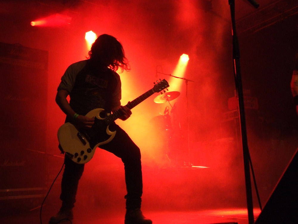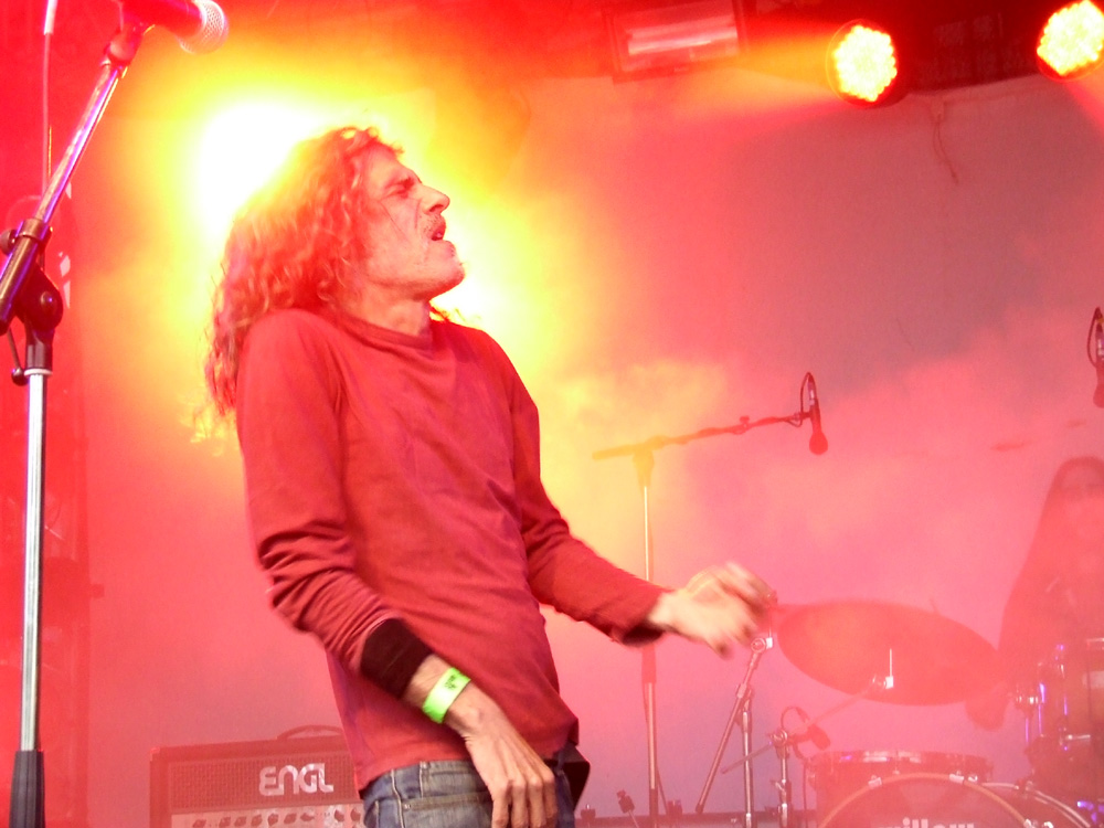 Nicht wenige warten an diesem Wochenende vor allem auf den Auftritt von UNCLE ACID & THE DEADBEATS aus dem Vereinigten Königreich, die Gerüchten zufolge in den von Spinnweben verhangenen Gewölben eines Edgar-Wallace-Schlosses hausen, wo sie sich im Halbdunkel an alten Horrorschinken ergötzen, in nahezu alchemistischer Manier psychedelischem Krach frönen, und sich von garstigen kleinen Kindern ernähren, während es ihre Haushälterinnen allenfalls eine Nacht bei ihnen aushalten. Gerüchte hin oder her, die Band macht einen selbstbewussten und musikalisch soliden Eindruck, ohne mich nachhaltig begeistern zu können. Die Grabkammern, in denen sie sich bedient, wurden in den vergangenen Jahren zu oft geplündert, um noch den großen Überraschungseffekt zu erzielen. Auf dem dunklen Waldweg Richtung Parkplatz kann ich mir zu den Klängen jedoch ohne weiteres ausmalen, dass dem Matsch zu meinen Füßen gleich ein Zombie entspringt, der mir ob meiner Ignoranz gegenüber solch einer Kultband die Hölle heißmacht – mit „Brutus Is A Hellhound“ im Ohr kann mich aber auch diese Vorstellung nicht erschrecken.
