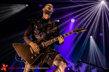 Danach gibt es Melodic Death-Metal aus Kalifornien. Untermalt werden die Songs, die teilweise auch symphonische Elemente enthalten, vom wild herum hüpfenden Maskottchen John Goblikon, dessen Kostüm etwas an Karneval und weniger an böse Gespenster erinnert, die man sich eigentlich nicht bunt vorstellt. Sei es drum – die Musik und die Show zünden eine weitere Stimmungsrakete in der prächtig gefüllten Arena und läuten den Aufmarsch der Helden des Abends ein.