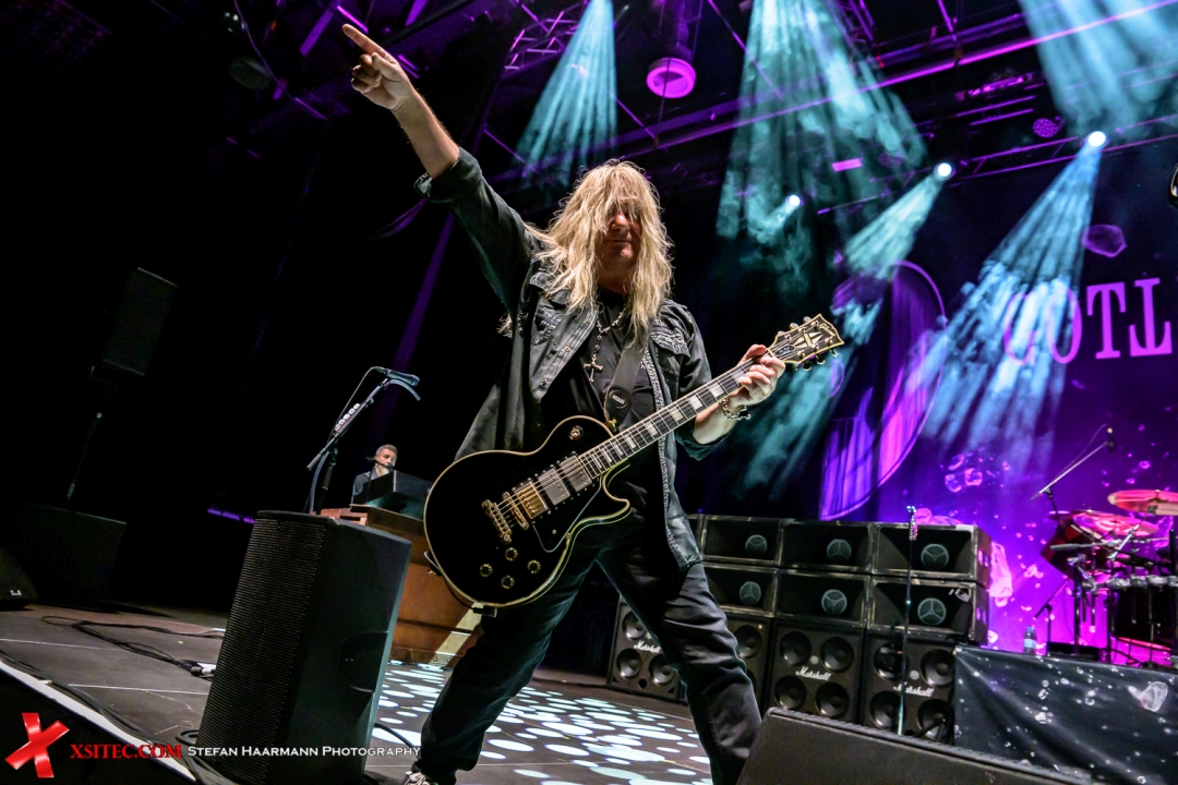 „Thunder & Lightning“, ebenfalls vom neuen Longplayer, macht mit tollem Riff und perfekter Hookline dort weiter, wo GOTTHARD seit Anfang der 1990er Jahre in die Erfolgsspur gefunden haben, einer der besten Titel der Band in der Post-Steve-Lee-Ära. Nicht umsonst halten sich die Mannen um Bandleader Leo Leoni seit ihrer Gründung beharrlich ganz oben im Bereich des Melodic Hard Rocks, was mit dem anschließenden „Top Of The World“ breitbeinig auf die Bühnenbretter gezimmert wird. „Stay With Me“ vom 2017er Output „Silver“, sowie das anschließende „Anytime, Anywhere“ vom 2008er „Lipservice“-Album zeigen die Band in toller Spiellaune, die keine Wünsche offenlässt.