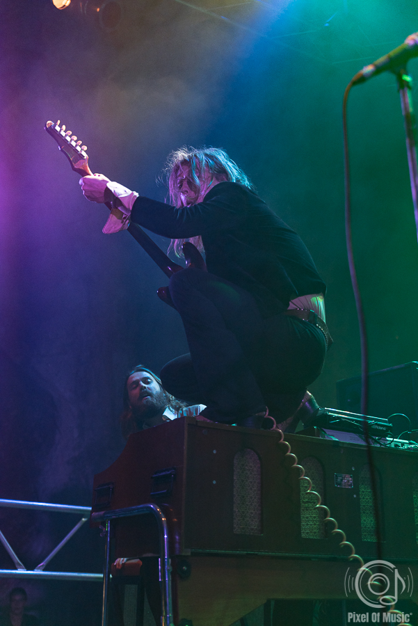 Die Jungs von der Ersatzbank, DeWolff, die kurzfristig für My Sleeping Karma eingesprungen waren, folgten im LineUp. Etwas knapp angereist, war man sich nicht sicher, ob ohne Soundcheck und ausreichende Vorbereitung alles rund laufen würde. Und wie der Teufel es wollte, gab es zu Anfang tatsächlich technische Probleme, die die Crew aber relativ schnell lösen konnte. Die niederländische Band aus Geleen (Provinz Limburg) besteht aus den Brüdern Luka (Schlagzeug) und Pablo van de Poel (Gitarre) sowie Robin Piso (Keyboard). Die Webseite des WDR Rockpalast attestiert DeWolff, „die Welt mit wildem, psychedelischem Sixties-Blues-Rock zu erschüttern“. Die drei Niederländer nähmen den Hörer mit „in eine Zeit, in der Led Zeppelin, Cream, Pink Floyd und Deep Purple die Welt beherrschten“.