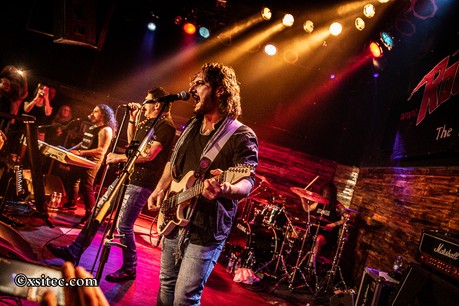 Nach XTASY geht es richtig zur Sache, denn mit HARDLINE betreten ein paar Musikanten die Bühne, die es sich an diesem Abend zur Aufgabe gemacht haben, anlässlich des 25. Jahrestages der Veröffentlichung ihrer Kultscheibe „Double Eclipse“ anständig abzurocken. Los geht’s mit dem Stampfer „Where Will We Go“, der sofort mächtig Partystimmung aufkommen lässt, getoppt aber umgehend vom Kracher „Takin´ Me Down“, der die Zeichen endgültig auf Vollgas stellt. Neben JOHNNY GIOELI, dem letzten noch verbliebenen Gründungsmitglied, greifen ALESSANDRO DEL VECCHIO (Keyboards), MARIO PERCUDANI (Gitarre), ANNA PORTALUPI (Bass) und MARCO DI SALVIA (Schlagzeug) zu den Instrumenten, die in der Folge dem Motto des Abends Rechnung tragend, entsprechend vehement bearbeitet werden.