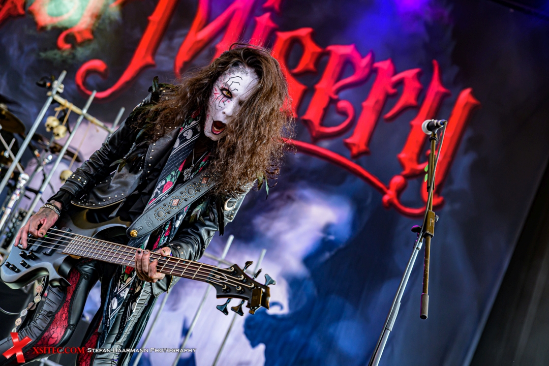 Die Maskerade der Schweden soll die selbstgewählte Genrenische „Horror-Metal“ unterstreichen, wobei hier Stilelemente des Gothic Rocks, sowie des Punks deutlich auszumachen sind. Das aktuelle Album „MISTER MISERY“ ist bereits der dritte Streich der Quartetts, der wie seine beiden Vorgänger neben knackiger Produktion tolle Songs bereithält, die folgerichtig den Geschmack des Gelsenkirchener Publikums treffen. Ein Mega-Gig, der gerne länger hätte dauern dürfen, aber der straffe Zeitplan lässt keine Verlängerung zu, wie auch Moderator Maschine traurig anmerkt, der sich bereits in der Anmoderation als großer Fan der Combo geoutet hatte.