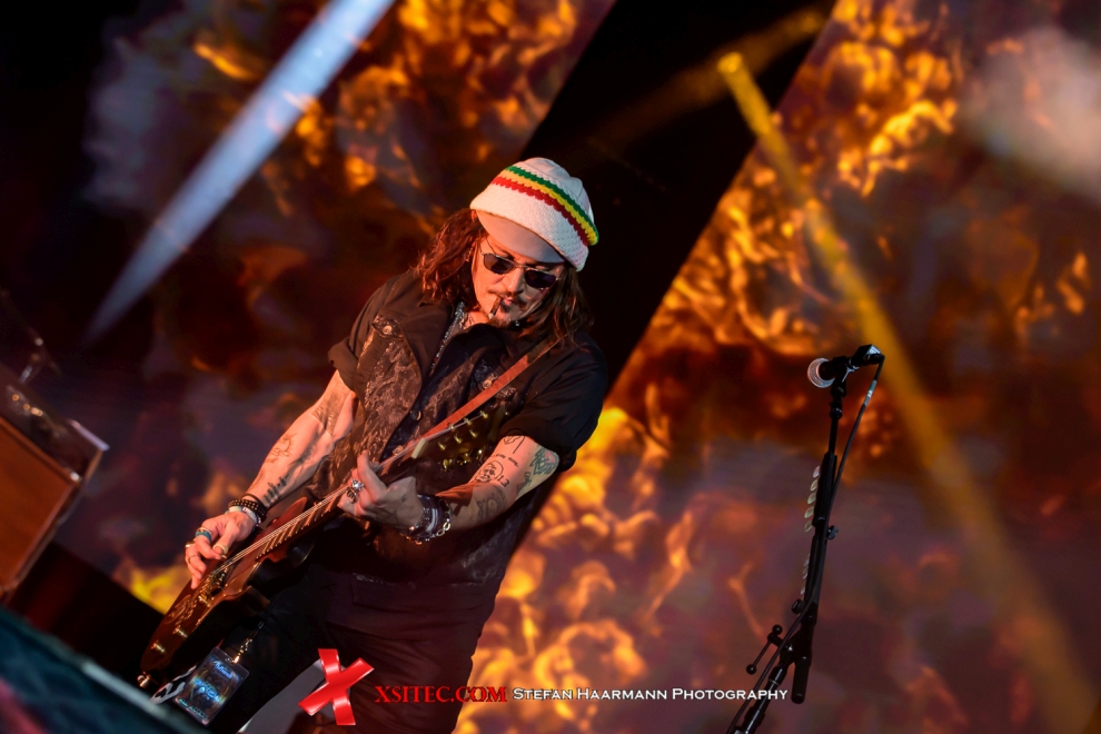 Joe Perry lässt es sich nicht nehmen, seine Fender wie zu besten AEROSMITH-Zeiten zu malträtieren, während Johnny Depp im Laufe des Konzerts sichtlich auftaut, des Öfteren an den Bühnenrand kommt, was die weiblichen Fans mit ohrenbetäubendem Jubel quittieren. Selbst Alice Cooper kann sich in diesen Momenten ein Lächeln nur mühsam verkneifen. Dass der Hollywood-Star nicht nur als Captain Jack Sparrow eine gute Figur macht, beweist er im Laufe des Abends bei verschiedenen Gitarren-Soli und starkem Gesang.