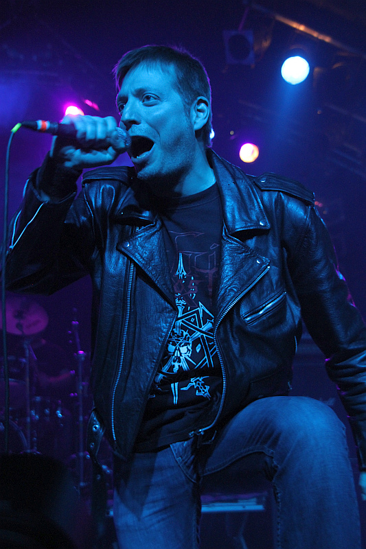 Danach wird es finster, denn THE RUINS OF BEVERAST machen sich mit ein paar Minuten Verspätung wegen technischer Probleme daran, die Markthalle zu pulverisieren. Alexander von Meilenwald hat sich hierfür mit Musikern von SECRETS OF THE MOON, KATHAARIA und ESSENZ verstärkt. Für dieses Vorhaben bedarf es übrigens keines optischen Firlefanzes, hier steht ganz klar die Musik im Mittelpunkt. So ist es fast schon wieder ein Statement, dass von Meilenwald nur mit schwarzem Pulli und blauer Jeans bekleidet auf der Bühne steht und auch seine Mitmusiker sind betont schlicht angezogen. Auch was die Lichtshow angeht, ist Spartanismus angesagt, so beschränkt man sich auf wenige Farben und Farbwechsel - und natürlich viel Nebel. Und das alles in Kombination mit dem schweren Bastard aus Black, Death und Doom Metal ergibt einen muskalischen Monolithen, der sich da vor den Zuschauern in der gut gefüllten Markthalle auftürmt. Beeindruckend, wie stoisch von Meilenwald am Mikrofon steht, mit tiefer und klarer Stimme singt und das Gerät vor ihm scheinbar verschlingen will, beeindruckend, wie die Band in entsprechenden Passagen ins synchrone Bangen verfällt, beeindruckend, welche Atmosphäre da mit minimalen Mitteln erschaffen wird. Zum Höhepunkt dieses raren Ereignisses geraten die abschließenden "Malefica" und "I Raised This Stone As A Ghastly Memorial". (ASZ)