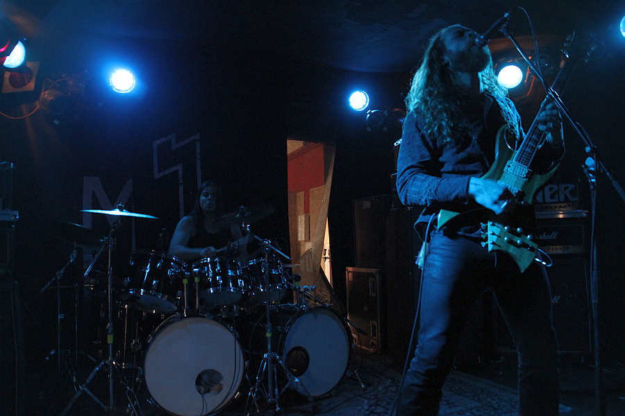 Das Hamburger Duo MANTAR steht als nächtes im Marx auf dem Plan. Die Band ist kurzfristig für THE OATH ins Programm gerutscht, passt aber perfekt hinein. Angesichts der Tatsache, dass MANTAR wie auch BÖLZER nur mit Gitarre und Schlagzeug agieren und beide Bands zumindest ansatzweise Einflüsse aus dem Black Metal verarbeiten, ist man geneigt, beide Bands auch direkt zu vergleichen. Wo bei den Schweizern ein Hüne vorne steht, ist es bei den Hamburgern ein dünner Schlacks mit nacktem Oberkörper und umgedrehter Kappe auf dem Kopf, der zudem auch noch schräg zum Publikum positioniert ist. Nicht nur optisch, auch musikalisch macht man Unterschiede aus. Was bei BÖLZER der Sludge, ist bei MANTAR der Harcdore - sprich, hier geht es deutlich groovelastiger zu, was wiederum zu deutlich mehr Bewegung im Publikum führt. Wer nicht bangt, nickt zumindest mit der Rübe mit. Durch den Einsatz von Nebel und Stroboskopen wird der nicht ganz so bollernde, dafür rotzigere Sound auch optisch ganz ordentlich in Szene gesetzt, das Sahnehäubchen auf einen ebenfalls sehr starken Auftritt sind die derben Krächzvocals von Schlacks Hanno. MANTAR ist übrigens türkisch und heißt auf deutsch "Pilz" - womit die Verbindung zum Trüffel von weiter oben wieder gegeben ist. (ASZ)