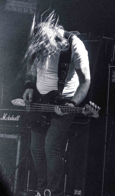 Neben MANTAR profitieren auch CORSAIR von der Absage von THE OATH, denn das Quartett aus Virginia darf sich auf seinem ersten Europa-Trip (für den man im Vorfeld um finanzielle Unterstützung seitens der Fans in Form einer Crowdfunding-Kampagne gebeten hatte) gleich mal in der großen Markthalle präsentieren. Diese ist zu diesem frühen Zeitpunkt schon sehr ansehnlich gefüllt, zumal wohl nur die wenigsten Besucher bisher mit dem Material der Band mit der einzigen Dame des Festivals (stimmt nicht, HETROERTZEN haben auch eine Gitarristin - ASZ) vertraut sein dürften. Und dass Gitarristin Marie Landragin zusammen mit ihrem Gegenpart Paul Sebring zu den wichtigen Säulen im Soundgefüge der progressiven Classic-Rocker gehört, belegt bereits ausführlich das gesangsfreie "Agathyrsi" zum Einstieg. Bevor es im späteren Verlauf des Festivals auf den Bühnen noch oft genug fies und düster werden wird, stehen hier und jetzt Twin-Gitarren zum Genießen und harmonische Finesse auf dem Programm. Die Band agiert zwar bewegungsarm und in ihrem Spiel ziemlich introvertiert, da etwa kaum Interaktion mit dem Publikum stattfindet, und ist durch ihren vermutlich bisher größten Auftritt vielleicht auch etwas nervös, aber ihre Musik ist auch nicht für das große Stageacting gemacht, sondern lädt zum genauen Zuhören ein. Während durch die recht langen Instrumentalstrecken immer wieder Jam-Atmosphäre aufkommt, macht der unter der Saitenfraktion aufgeteilte Gesang die Band zusätzlich speziell. Gitarrist Paul ist dabei zwar am meisten gefordert, aber das THIN LIZZY-Flair kommt passenderweise erst so richtig gut rüber, wenn der zentral positionierte Bassist Jordan Brunk bei einer Nummer wie "Chaemera" die Vocals alleine übernimmt. Und die tänzelnden Rhythmen und Melodien, die auch einen Song wie "Falconer" ausmachen, verfehlen ihre Wirkung beim Publikum nicht, welches der Band zunehmend deutlich macht, wie willkommen sie trotz ihrer verhältnismäßig melodischen Ausrichtung in der Hamburger Hölle sind. Als die musikalische Reise mit CORSAIR gefühlt viel zu früh schon wieder vorbei ist, besteht beim Pausenbier dann auch allgemeine Einigkeit über die ersten großen Gewinner des Tages. (LS)
