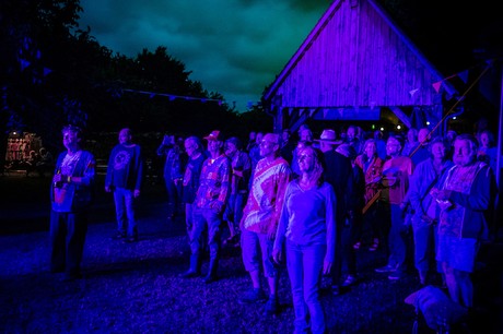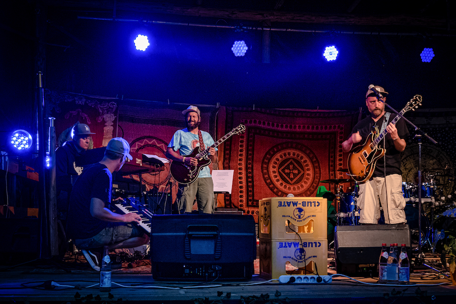 Ein bezeichnendes Gefühl insgesamt war eines der Dankbarkeit, das von Beginn an vorhanden war: als Bassist Christoph von der Heide die Eröffnung des Festivals begann, hieß er alle willkommen und bedankte sich im Namen aller beim Eigentümer des Geländes, Hans, für seine Zustimmung, JAMKRAUT dort stattfinden zu lassen, für seine harte Arbeit – an der Bühne, die Organisation und seine Unterstützung. Viel mehr Danksagungen sollten in den nächsten beiden Tagen noch folgen, für die kulinarische Verpflegung auf dem Festivalgelände, dem Team am Mischpult und für das geplante Frühstücksbüffet am folgenden und am Sonntagmorgen.