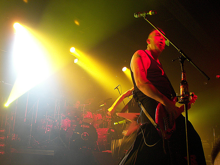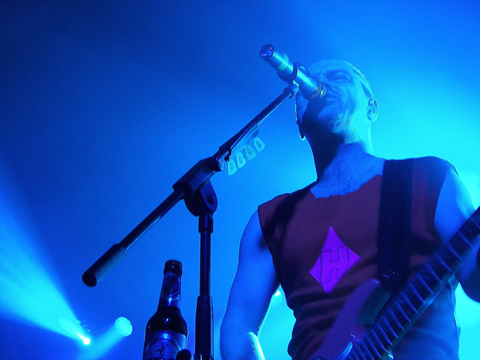 Den Auftakt haben EISBRECHER zu bestreiten, die von Hannes "G.Laber" Holzmann als Band aus München vorgestellt wird, was mit lauten Buh-Rufen quittiert wird. Neue Deutsche Härte steht auf dem Programm, soll heißen: Monotone Rhythmen, tiefer gestimmte Gitarren, Gameboy Samples und deutsche, pseudo-provokative Texte. Die Band wäre ein echter Rohrkrepierer, wenn Front-Glatze Alexx Wesselsky nicht eine beinahe unheimliche Bühnenpräsenz besäße: Der Hüne hat mit seiner ausladenen Gestik, dynamischen Bühnenperformance und sympathischen Ansagen ("unser erster Auftritt seit einem Jahr - wir haben die Hosen voll") beim Publikum leichtes Spiel. Aus anfänglicher Zurückhaltung entwickelt sich in kürzester Zeit eine begeistert mitgehende Meute, die am Ende sogar nach Zugaben verlangt.
