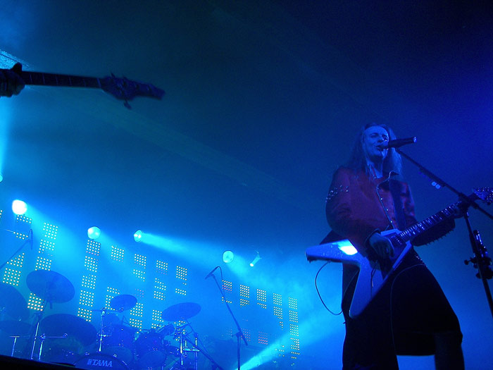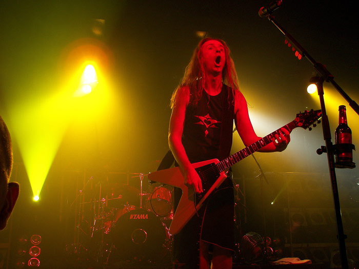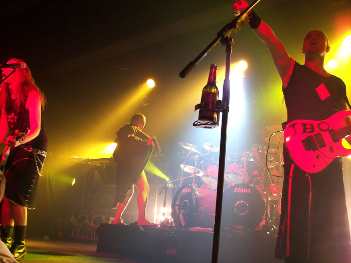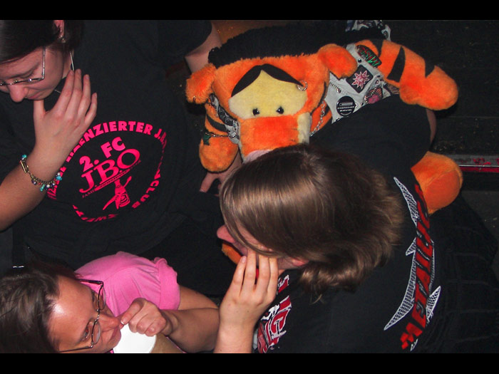 Der oftmals debile Genital-Humor von J.B.O. ist sicher nicht jedermanns Sache, doch live macht der Mix aus Heavy Metal, Comedyeinlagen und bayerischer Folklore jede Menge Laune. Die blödsinnigen Dialoge zwischen Vito C. (Schöngesang, Gitarre) und Hannes "G.Laber" Holzmann (Wüstgesang, Gitarre) befinden sich teilweise auf einem so niedrigen Niveau, daß es schon wieder oben rauskommt. Das quietscherosa Programm bietet Abwechslung pur: Bayerischer Schuhplattler in Krachlederner mit Metal Riffs, weihrauchschwenkende Rock Priester in weißen Unschuldsgewändern, Trenchcoach-Bühnenflitzer mit ausladenden Penisprothesen und lustiges Bass- und Gitarrenriff Raten quer durch die Musikgeschichte gehören genauso zum Programm wie die für Hamburg Konzerte anscheinend obligatorische Dildo-Übergabe aus dem Publikum: Wenn Vito mit dem vibrierenden Gummiteil seine E-Gitarre bearbeitet, entstehen nicht nur ungeahnte Soundspektren metallischer Tonkunst, sondern auch epidemische Heiterkeitsausbrüche vor der Bühne.