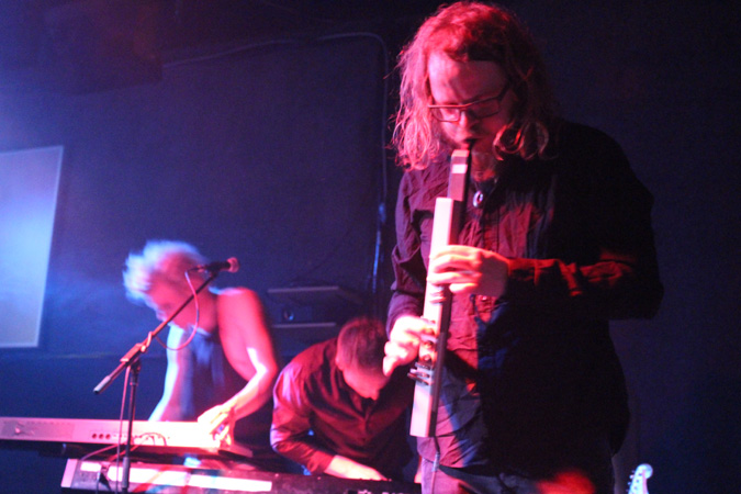 Festgelegt auf "ihre" Instrumente sind die Jungs auch nicht allzu zwanghaft, sondern wechseln schon mal ein wenig hin und her, so dass sich entweder zwei Tastenritter duellieren, eine psychedelisch klingende Elektroflöte oder zusätzliche Percussions zum Einsatz kommen. Trotz alledem wirkt das Konzert keineswegs chaotisch, sondern entwickelt einen eigenen Tiefensog, dem ich mich schwerlich entziehen kann, auch wenn ich an diesem Abend zum ersten Mal etwas von der Band höre. Martin Byrialsen ist vom eigenen Auftritt vor kleinstem Publikum so angetan, dass er offenbar jeden Einzelnen spontan in sein Herz schließt, den Anwesenden rät, am nächsten Morgen nicht zur Arbeit zu gehen und dafür die Tournee zu begleiten. Ein belgischer Fan scheint den Keyboarder seit Tagen beim Wort zu nehmen und taucht bereits beim x-ten Konzert auf. Man kann sein Leben wesentlich dümmer verschwenden, soviel steht fest.