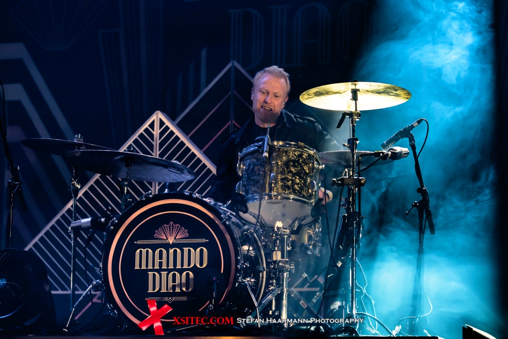 Der Umbau der Bühne geht nach dem Abgang der KILL STRINGS zügig von der Hand, die Deko für MANDO DIAO steht bereits und wird von Stage-Hands nur noch in den Fokus gewuchtet. Der erste Eintrag der Setlist kommt vom aktuellen Album. „Frustration“ zeigt die Band direkt hellwach, die Fans in der Halle ziehen begeistert mit und bereiten den Schweden einen herzlichen Empfang. Björn Dixgård betätigt sich ein ums andere Mal als Vortänzer, der sich mit Klampfe und Lederjacke scheinbar erst einmal austoben muss. „One Last Fire“ ist somit auch nicht der Abgesang der Band, sondern der Auftakt zu einem furiosen Spurt in Richtung „All The Things“ und „Money Doesn´t Make You A Man“, bevor mit „Ochrasy“, „Long Before Rock´n´Roll“ und „The Band“ der zweite Akt in Form eines Swing-Akustik-Sets ansteht, der gediegene Club-Atmosphäre schafft und das Palladium auf eine Reise zu den Anfängen der Band mitnimmt.