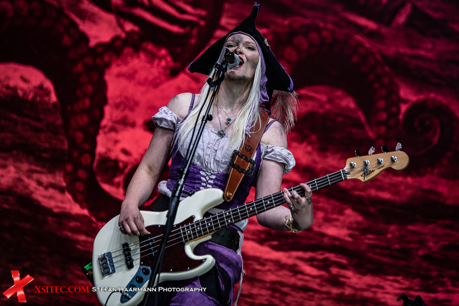 Überhaupt dominieren im Publikum die Piratenkostüme, die sich aufgrund des prächtigen Wetters und der glücklicherweise etwas gelockerten Ausstiegsbedingungen auch auf oder neben ihren Auto aufhalten dürfen, solange sich keine größeren Gruppen bilden. Chefpirat Mr. Hurley geht als erster an Deck, gefolgt von seiner Crew Pegleg Peggy (Bass), Buckteeth Bannock (Akkordeon), sowie dem einäugigen Morgan (Schlagzeug).