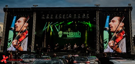 Das Wetter spielt an diesem Abend erfreulicherweise wieder bestens mit, die untergehende Sonne taucht sie Szenerie in goldenes Licht. Pünktlich um 20:30 Uhr geht es los und die Münsteraner entern die Bühne. Die Band ist seit ihrer Gründung im Jahr 2006 mit ihrer tief in der POGUES- und DROPKICK MURPHEYS-Tradition verwurzelten Musik nicht nur bundesweit, sondern auch international erfolgreich. MR. IRISH BASTARD himself begrüßt die zahlreichen Fans in der Auto Arena sichtlich bewegt, schließlich ist es mittlerweile nicht mehr selbstverständlich, als Künstler vor ein Livepublikum treten zu können.