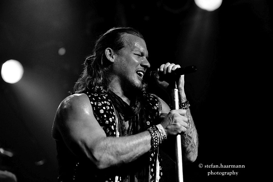 „Judas“, „Do You Wanna Start A War“, „Bad Tattoo“ und „Sandpaper“ krachen mit ultimativer Power aus den Boxen, während Jericho neben seinem aus der NJPW bekannten, mit farbigen LEDs besetztem Sakko, auch eine Konfetti-Kanone zum Einsatz bringt, die den Saal mit einem Gemisch aus Papierschnipseln und Trockeneis-Nebel überzieht. Nach einem fulminanten Set räumt das Quintett das Feld.