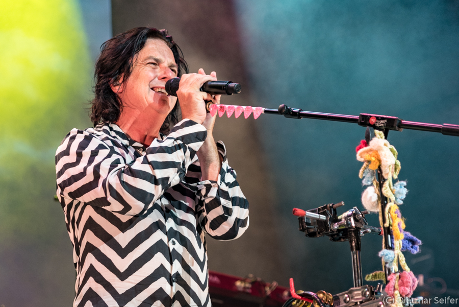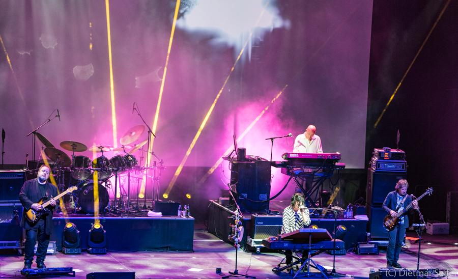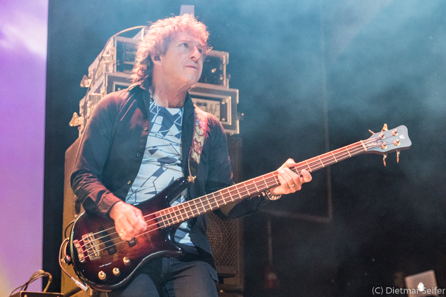 Ian Mosley saß so versteckt hinter seiner Schießbude, dass er zumindest aus dem Fotograben für mich kaum sichtbar war. Der Bassist Pete Trewavas stellt mich allerdings vor eine Herausforderung. Da er sein Spiel häufig durch stakkatoartige Körperbewegungen unterstützt, hieß es „Offenblende“ um möglichst kurze Belichtungszeiten zu erreichen.