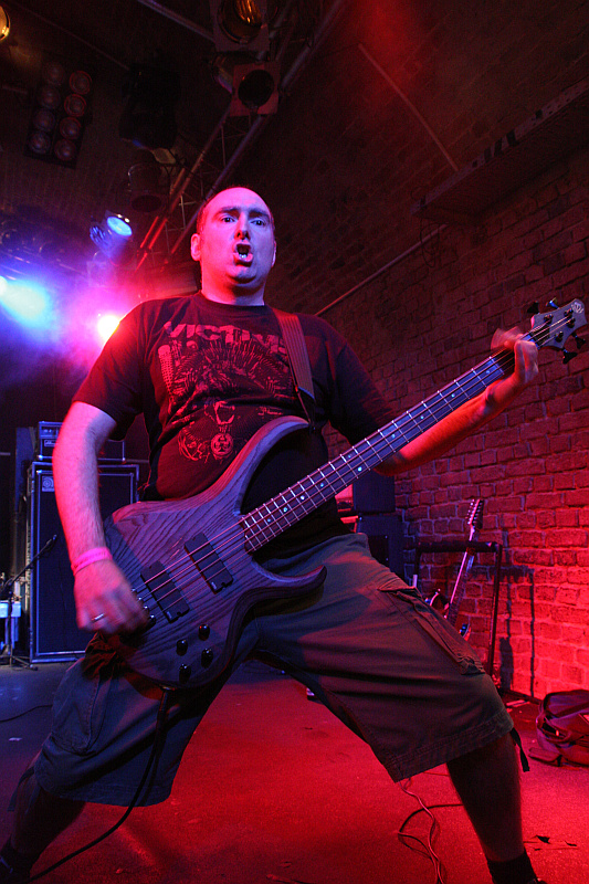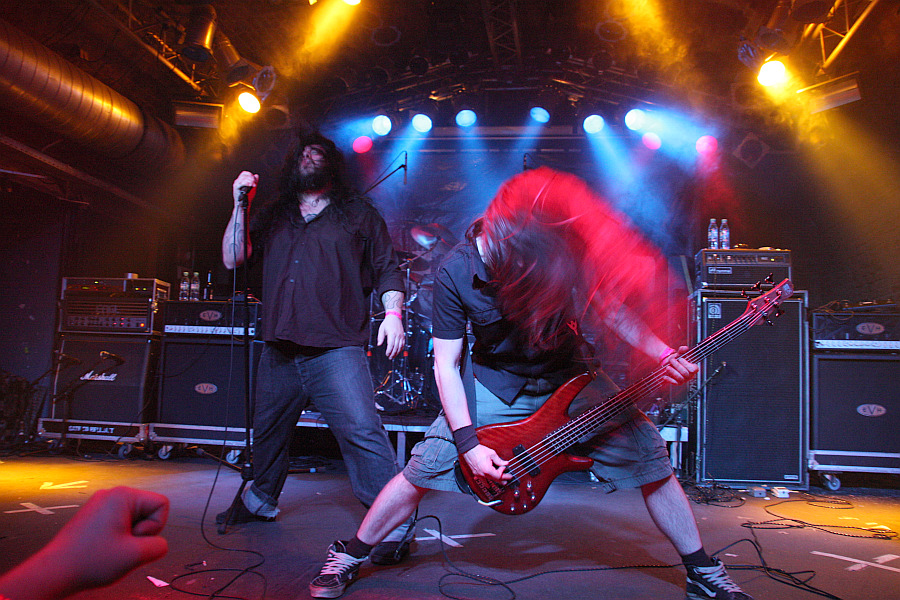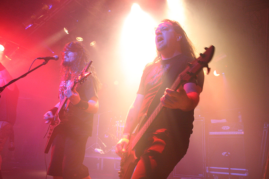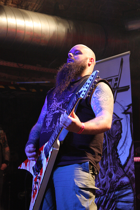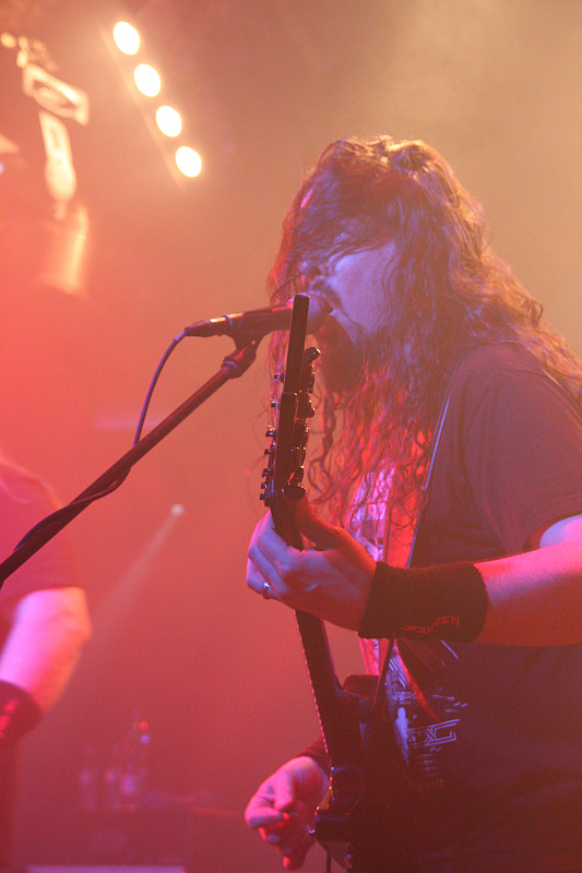 Testaments Chuck Billy, sein kehliger Gesang erinnert dagegen ein wenig an Obituary. Mit seiner Schirmmütze und dem Bass in Lemmy-Optik stiehlt ihm Tieftöner Thomas Lendzian aber sogar noch die Show. Die Band hat sichtlich Spaß an ihrem Auftritt, was sich allerdings nicht so recht auf das Publikum überträgt, dem der Sound wohl nicht straight genug ist. Nach neun Songs verabschieden sich die Dorstener und machen die Bühne für DEATHFIST frei.