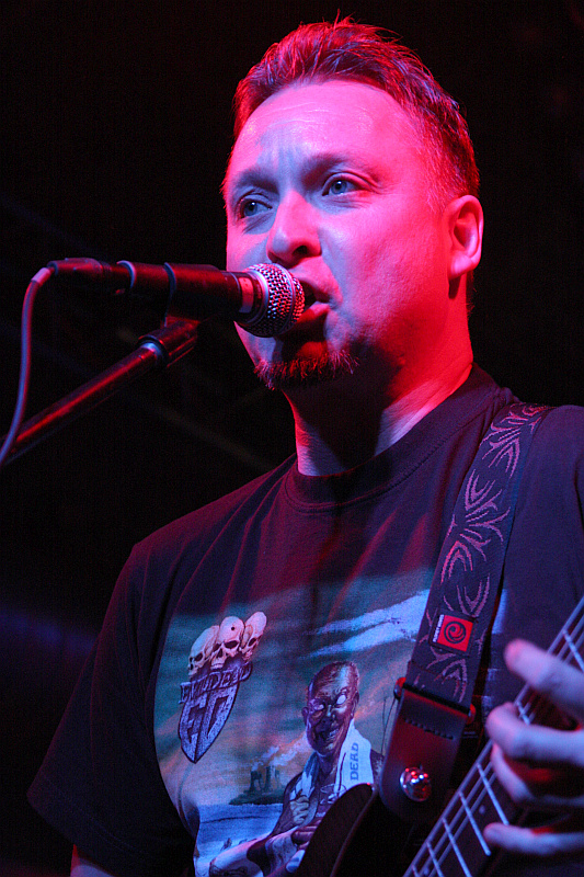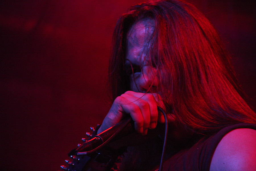Im runden Gewölbe der Matrix wird es danach noch finsterer, als es eh schon ist. DESASTER entern in echtmetallischer Nieten- und Nägel-Montur und im Falle von Basser Odin auch mit Corpsepaint im Gesicht die Bühne, um dem Publikum eine Ladung angeschwärzten Thrash Metals um die Ohren zu hauen, die sich gewaschen hat. Mit Leidenschaft und Hingabe zelebriert das Quartett seinen finsteren, authentischen Sound und erntet völlig zurecht die bisher besten Reaktionen des Publikums. Besonders die Ausstrahlung von Sänger Sataniac, der seine Texte mit grimmigen Blick bellt, sorgt für boshafte Atmosphäre, aber auch Odin und Gitarrist Infernal sorgen mit sehenswertem Stageacting für das Gelingen der Show. Einziger Wermutstropfen aus Sicht des Rezensenten: da in Sachen DESASTER noch eine dringend zu stopfende Bildungslücke vorhanden ist, wird von den gespielten Songs lediglich "Teutonic Steel" erkannt. Trotzdem eine geile Show.