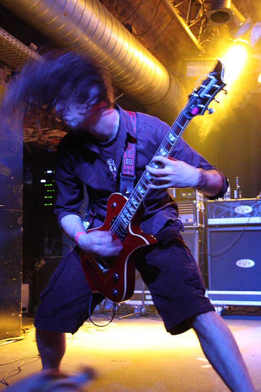 Wenn ein junger Nachwuchs-Thrasher sich einen ganzen Auftritt lang in der ersten Reihe mit dem Rücken zur Bühne stellt, um sein Desinteresse am Gebotenen zu demonstrieren, bekommt man schon mal das Verlangen, dem Pimpf eines auf die Mappe zu geben. So etwas ist respektlos und gehört sich einfach nicht, zumal nicht davon auszugehen ist, dass der Rotzlöffel das Musizieren besser drauf hat, als THE VERY END. Gut, zwischen DEATHFIST und DESASTER ist die Band, die als Ersatz für Final Depravity auf dem Billing steht, rein stilistisch alles andere als optimal aufgehoben, was jedoch nichts an der astreinen Performance und der starken Musik der Band ändert. Die Essener, die an diesem Abend mit Aushilfsgitarrist Alex Bartkowski von den Kölnern Guerrilla antreten, können sich rühmen, den mit Abstand besten Sänger des Abends in ihren Reihen zu haben: Björn Goosses, den so mancher von den wieder aktiven Night In Gales kennen dürfte, hat von melodischen Passagen bis hin zu todesmetallischen Growls einfach alles drauf. Genauso abwechslungsreich ist das Songmaterial, groovig, melodisch, knackig hart und immer schon straight nach vorne rockend, als stellvertretende Highlights müssen hier "Flatline" und die beiden am Ende positionierten "Dead Is The New Alive" und "Blacklisted" genannt werden. Nach zwei guten Alben und starken Liveperformances wie dieser ist klar: THE VERY END sind kein Geheimtipp mehr, sondern ein verdammt gute Band, die hoffentlich in Zukunft noch mehr Aufmerksamkeit bekommt.